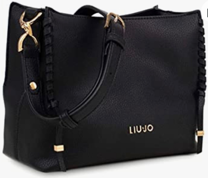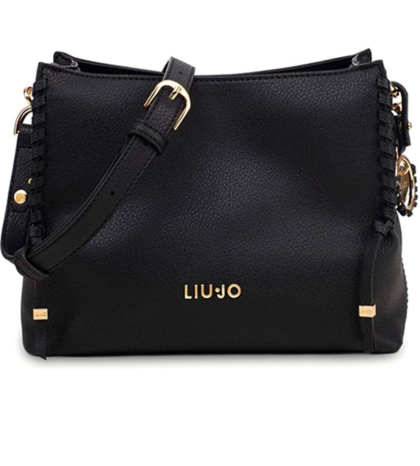 tracolla in ecopelle e logo frontale in materiale color oro presenta due scomparti chiusura con clip mgnetiche e pendente logato