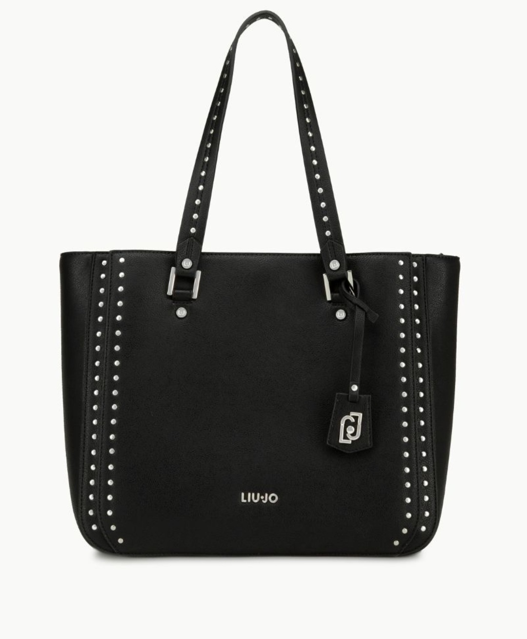shopping bag in similpelle con borchie in applicazione charm gioiello removibile in abbinamento misure 33x29x14
