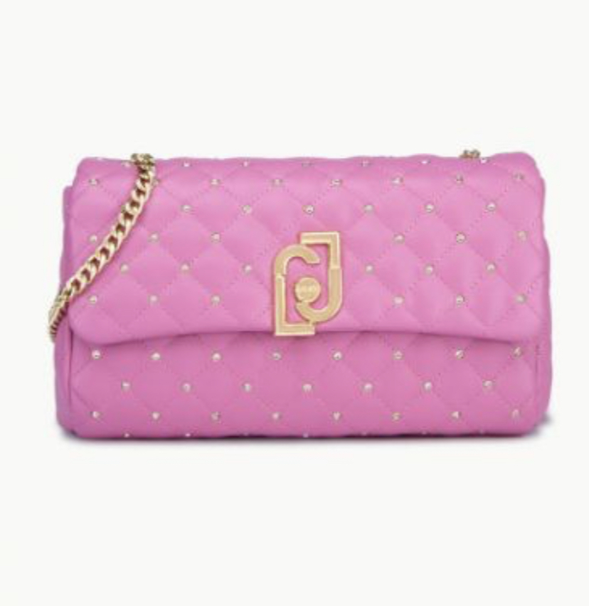 elegante accessorio donna in similpelle impreziosito da strass.La chiusura con pattae manici in catena